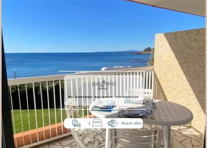 Das am Strand 31 m^2 große Apartment Vue Mer 180 Degres - Wifi - Parking Saint-Raphaël liegt in unmittelbarer Nähe von verschiedenen Sehenswürdigkeiten der Gegend: Plage de la Péguière befindet sich unter anderem weniger als 5 Gehminuten von hier entfernt. Das Apartment bietet Ausblicke aufs Meer.